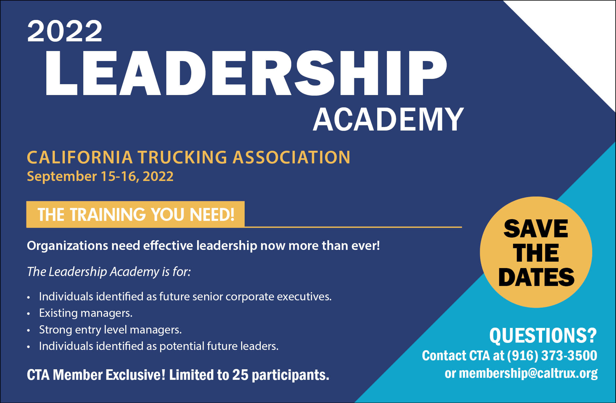 For more information please contact CTA at events@caltrux.org or (916) 373-3500.